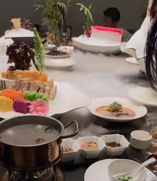 晒出画面中,聚餐大概有十几个人,围了一大桌吃小火锅,看餐厅环境很不错,菜色也是相当豪气,而且每个席位旁边还都摆了一瓶茅台酒,看样子是打算不醉不归。